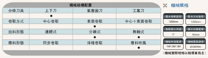 電機控制部分:長度控制部分使用光電式感應器搭配兩段式計長器,長度準確。張力控制器為自動卷徑控制,可隨直徑變化自動增加張力。